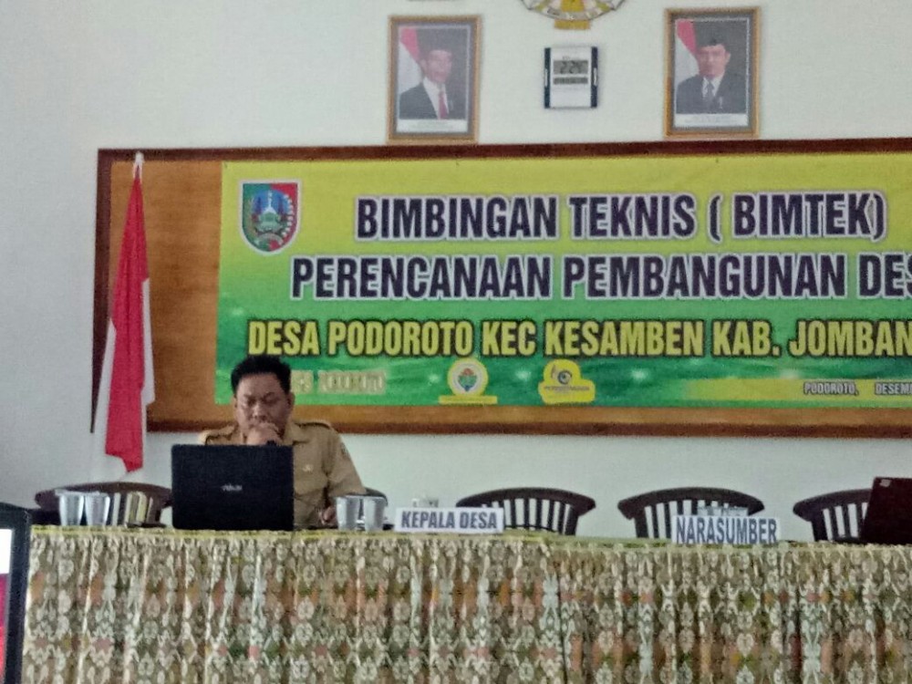 Bimbingan Teknis (BIMTEK) Perencanaan Pembangunan dilaksanakan di Balai Desa Podoroto.