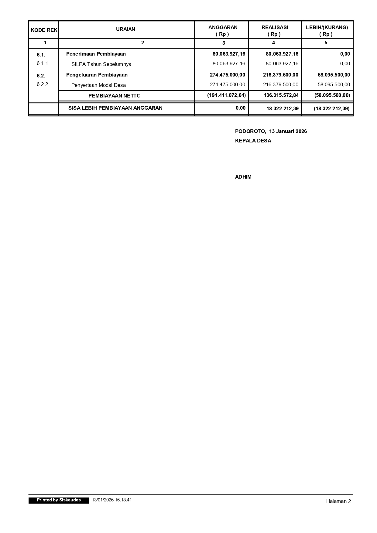 LAPORAN REALISASI PELAKSANAAN ANGGARAN PENDAPATAN DAN BELANJA DESA TAHUN ANGGARAN 2025